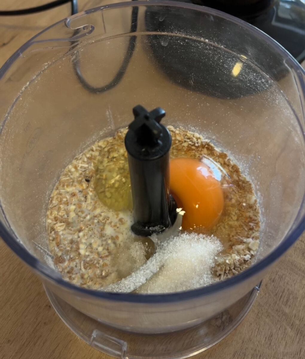 Овсянку размельчить в блендере. Добавить к размельченной овсянке одно яйцо, соль, сахар по вкусу и размешать в блендере 🌪️ Оставляем готовую смесь постоять на столе для разбухивания на 10 минут ✨ Далее приступаем к готовке 👩🏽🍳 Ингредиенты: Овсянка (молотая) 40 грам Яйцо 1 шт Сахар Соль шепотка Начинка: Сметана Банан Приятного аппетита 😋