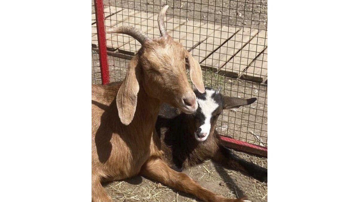 Недавно в Сибирский зоопарк Иркутска пришли туристки со щенками и попросили сотрудников зоопарка забрать малышей под свою опеку. Те отказали, так как все вольеры заняты дикими животными. Но девушки все же оставили малышей у ворот. Находку обнаружили утром, а вместе с ней и денежный перевод, который должен был помочь прокормить щенков. «Потомству было дней пять от роду, слепые еще, породы никакой — дворняги, — рассказала биолог Сибирского зоопарка Ангелина Никитина. — Первое время щенки жили в комнатах у работников, но это же не условия для трех собак! Кормили их детской смесью. А потом наша коза Фрося родила, и ветеринары решили попробовать дать ее молоко. Малыши оказались не против такого лакомства — и тогда их подложили к козе». Щенки питались козьим молоком почти две недели, а после кормления, чтобы малыши не мерзли, их подложили к аляскинскому маламуту по имени Рада. Так и получилось, что коза Фрося их кормила, а маламут Рада грела. Но потом произошло чудо! «У Рады появилось молоко