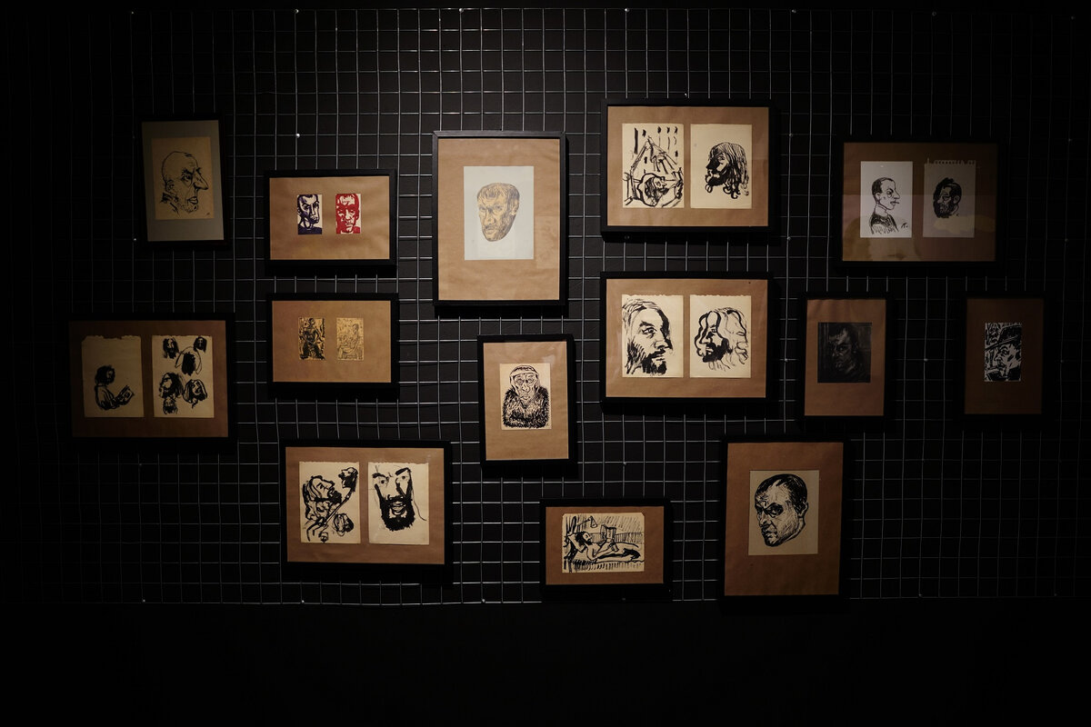 Сарайчики хотели сделать тематическими, но в итоге получилось, скорее, передать общий «вайб»: на двери одного из «домиков» вырезано сердечко, кое-где доски опалены, стены внутри каждого «садового домика» оклеены винтажными обоями и копиями работ Лубнина (значительная часть которых — из коллекции Марины Алексеевой и Бориса Казакова). Фишка графики Лубнина — крафтовая бумага, на ней же печатали сканы для выставки в саду.