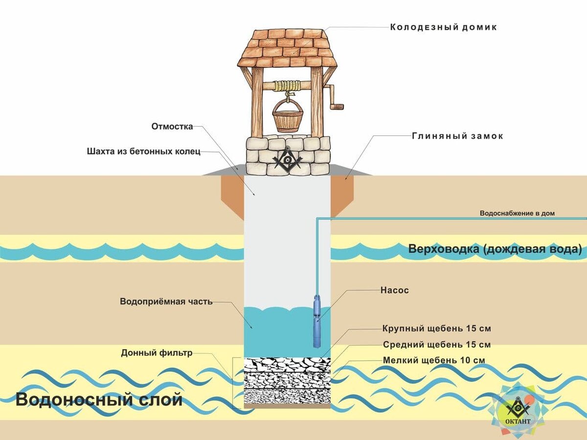 Далеко не на все колодцы требуется установка донного фильтра. Там, где глиняная почва и вода бьёт ключом устанавливать фильтр НЕЛЬЗЯ!!! Так как он может перекрыть доступ к ключу и колодец не будет наполняться. В таких колодцах вода так идёт чистая, следовательно, дополнительная очистка не требуется, а так же он не может заилиться или заплыть.