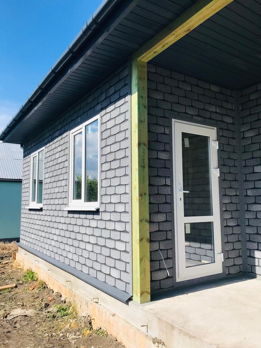 Полностью закончены работы по наружной отделке с применением панелей Хауберг (гибкий кирпич).