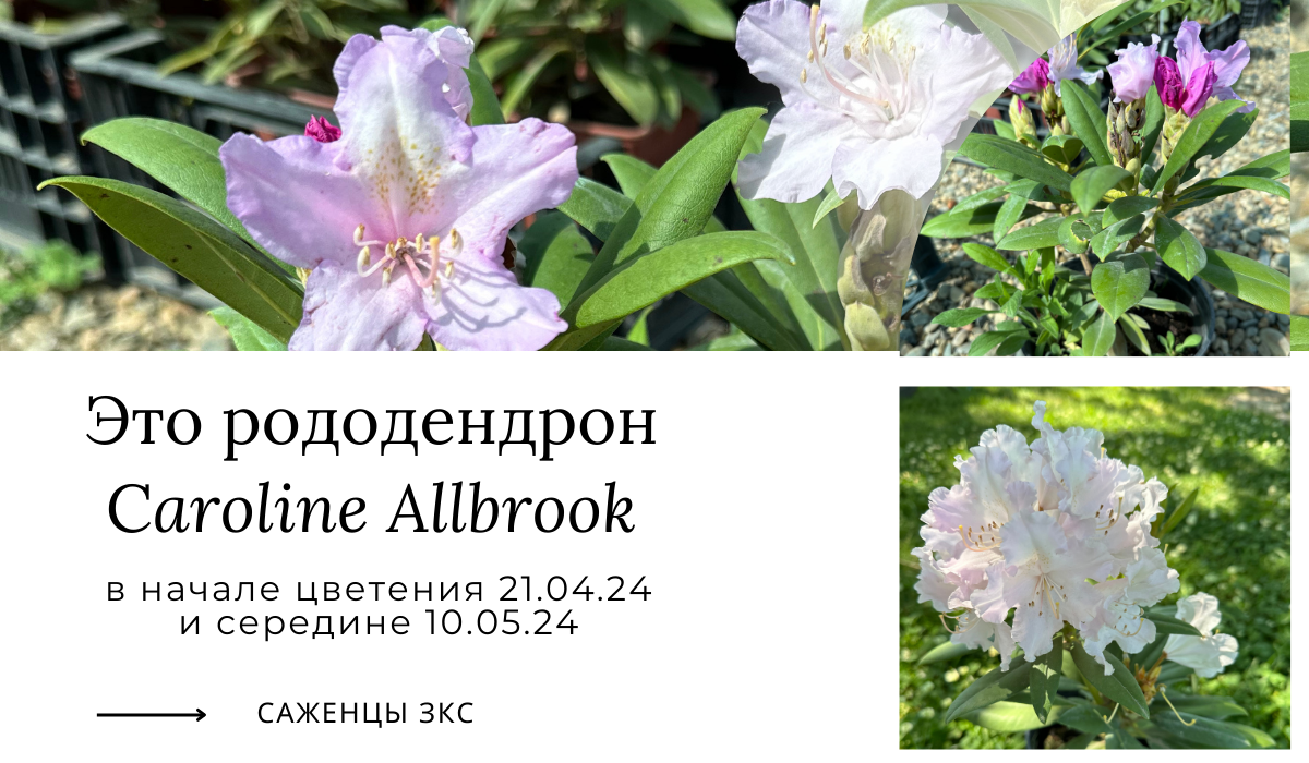 Из лилового в жемчужно-розовый за 20 дней - это рододендрон Каролина Альбрук. Соцветия английского рододендрона Caroline Allbrook размером 12 см сформированы из 12 — 16 цветков. Каждый достигает 6 см в диаметре. Обильное, пышное цветение длится с мая по июнь. Побеги густо облиственны крупными блестящими темно-зелеными листьями. Кустарник высаживают как одиночными экземплярами, так и в групповых посадках. Великолепен рододендрон на фоне хвойных растений, которые прекрасно оттеняют его царственную красоту. Кусты рододендрона округлой формы достигают высоты 0,9 м. Взрослые растения раскидываются в ширину до 1,2 м. Листья сочного зеленого цвета, вытянутые, овальные, с заостренным кончиком. Кустарник прекрасно переносит понижение температуры воздуха до -25 °С. Растение зацветает в мае. Светло-фиолетовые цветки постепенно меняют окраску на почти белую. Внутри имеется желтоватый рисунок. СРОКИ ДОСТАВКИ УТОЧНЯЙТЕ ПРИ ОФОРМЛЕНИИ ЗАКАЗА Оформить заказ: dolinaroz.ru или 8918 1 715 715 Доставка ТК