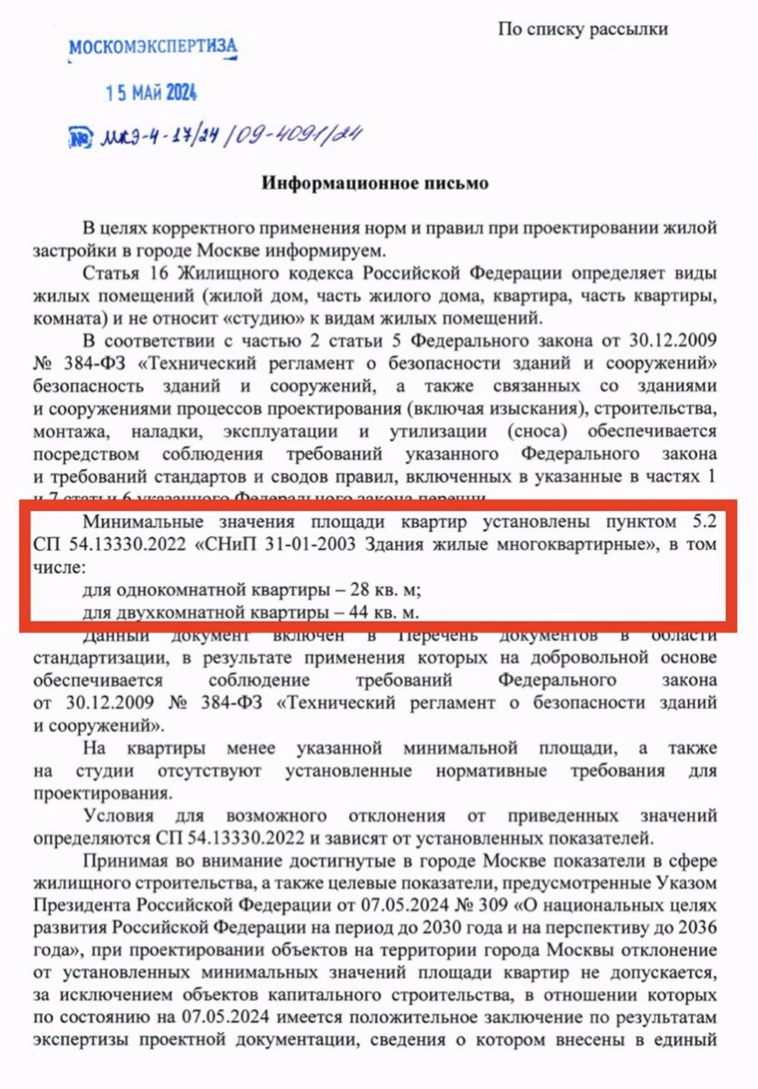 Иными словами, на арену выходят требования п.5.2, п. 5.3 и 5.11 СП 54.13330.2022 — они становятся обязательными (и именно они регулируют площади квартир и отдельных комнат). К комплексам, которые уже обзавелись полным пакетом документов, эта история не относится.
