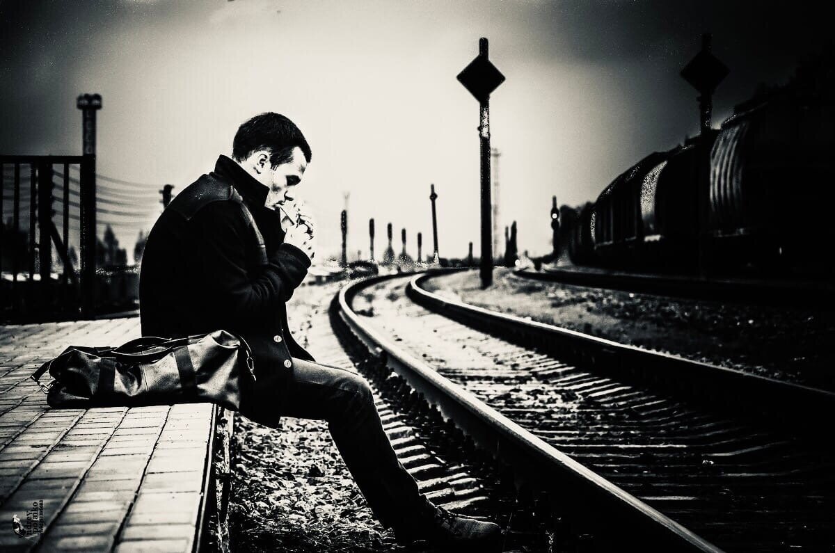 Олег курил тяжело затягиваясь, чуть в стороне от толпы, вывалившей на перрон. Стоянка была пятнадцатиминутная и желающие “надышаться” никотином моментально рассыпались по небольшому полустанку.