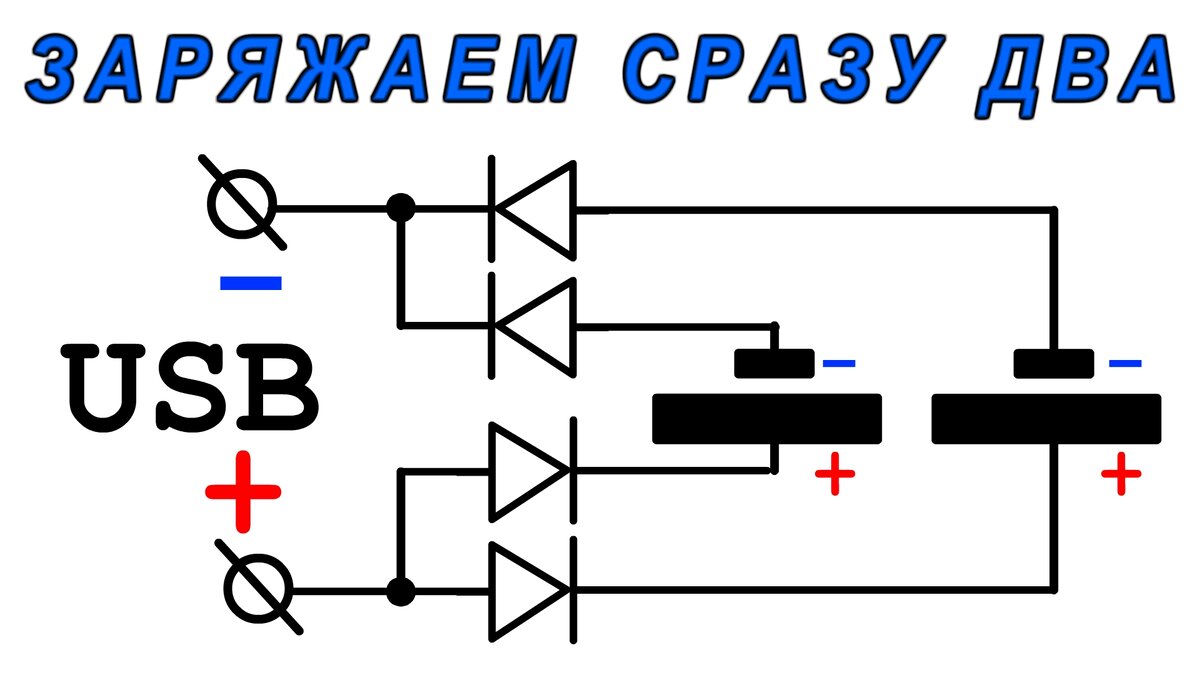 СХЕМА для быстрой зарядки двух Аккмуляторов от одного USB
