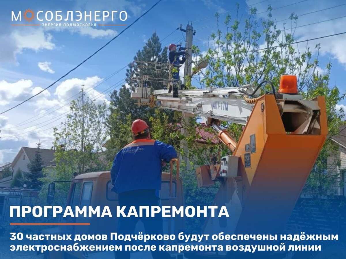 30 частных домов Подчёрково будут обеспечены надёжным электроснабжением после капремонта воздушной линии