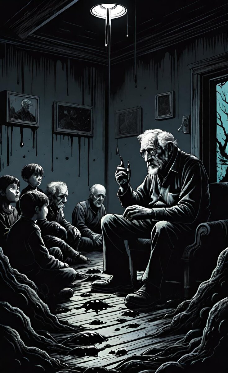 Голоса врага стали громче, а черная жижа еще быстрее стала заполонять комнату. Вот она уже капала с потолка, обвивая ребят и Олежку в густой кокон, подбиралась к Мишке.