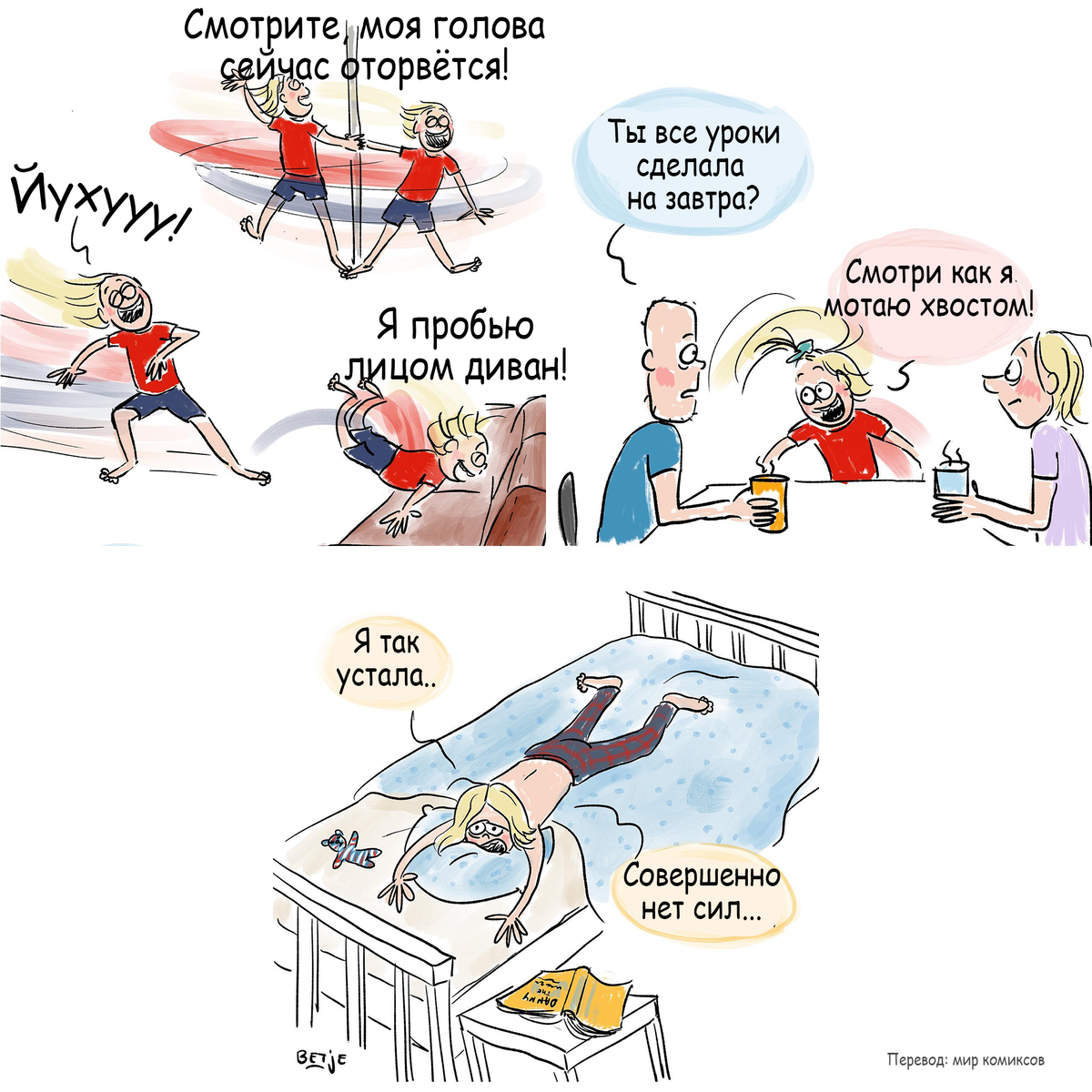 Каждая мама рано или поздно столкнется с удивительной способностью детей – истерить на ровном месте. Малыши частенько не могут объяснять свои эмоции, поэтому пытаются донести печали и просьбы криком. Иногда от такого крика становится слишком громко в общественных местах, а иногда – дома. И тут два варианта – либо трепать себе нервы, либо конвертировать проблему в творчество. Художница Элизабет Тон выбрала второй вариант. Ей, маме троих детей, истерики, нервные сдвиги и прочие прелести родительства известны не понаслышке. Но «зуд рисования» сидит у Элизабет в крови, поэтому читатели регулярно получают комиксы, а заодно огромный заряд бодрости, позитива и откровенного смеха. Мама-голландка – круче не бывает Элизабет Тон живет в Нидерландах. В стране, где предпочтения и желания детей поставлены во главу угла, и родители относятся к ребятишкам с огромным уважением. В семействе есть папа, мама и детки разного возраста. День Элизабет расписан по минутам – все они заняты. Однако даже в та