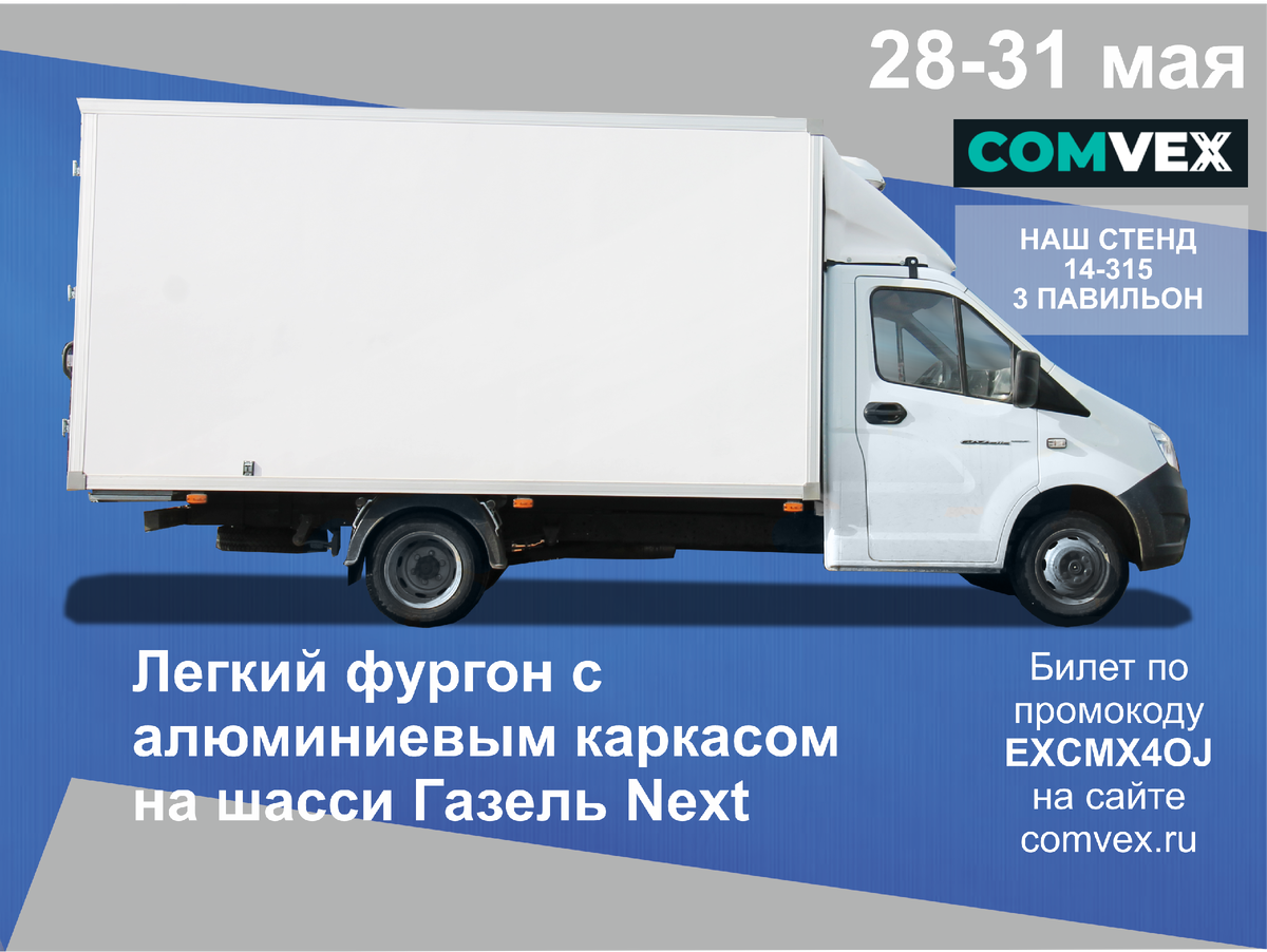 Одним из экспонатов выставки Comvex в Москве станет новый фургон производства Промтех на шасси ГАЗель NEXT. Особенность данной модели в использовании алюминиевого каркаса, лежащего в основе надстройки. Это позволяет сохранить необходимую жесткость кузова и при этом обеспечить его защиту от коррозии. К тому же такие кузова легче аналогов с металлическим каркасом, а значит, готовый автомобиль получается более грузоподъемным.