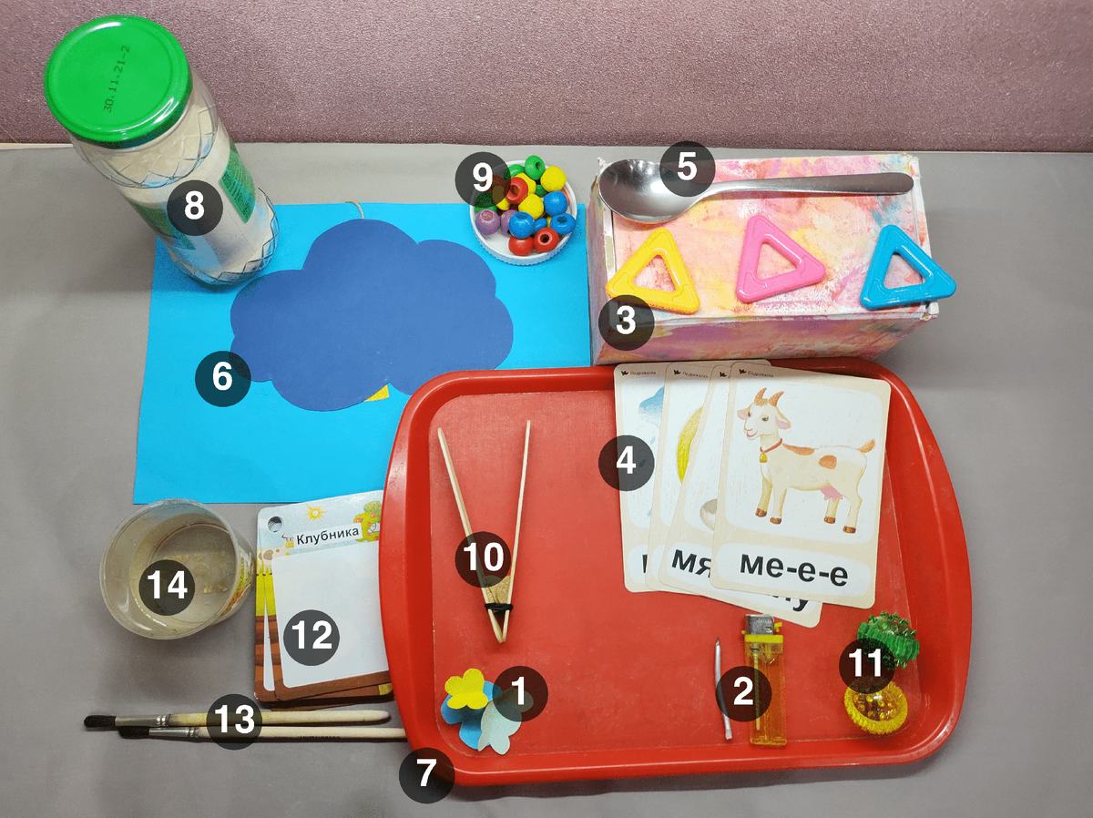 3) Игра на запуск речи с карточками и магнитным жезлом (ложка + магниты);