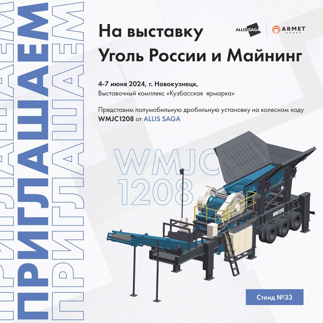 Лето не только время отдыха, но и замечательная возможность для профессиональных встреч! Приглашаем вас на XXXII Международную специализированную выставку технологий горных разработок «Уголь России и Майнинг», которая скоро пройдет в Новокузнецке! На нашем стенде вы сможете увидеть звезду экспозиции - полумобильную дробильную установку на шасси серии W от ALLIS SAGA. Модель WMJC1208 — это вершина инженерной мысли, предназначенная для эффективного первичного дробления как рудных, так и нерудных материалов. Среди особенностей установки - высокопроизводительная дробилка MJC1208 и питатель FV1148, обеспечивающие непревзойденную надежность и качество обработки. Откройте для себя уникальные преимущества нашей техники: