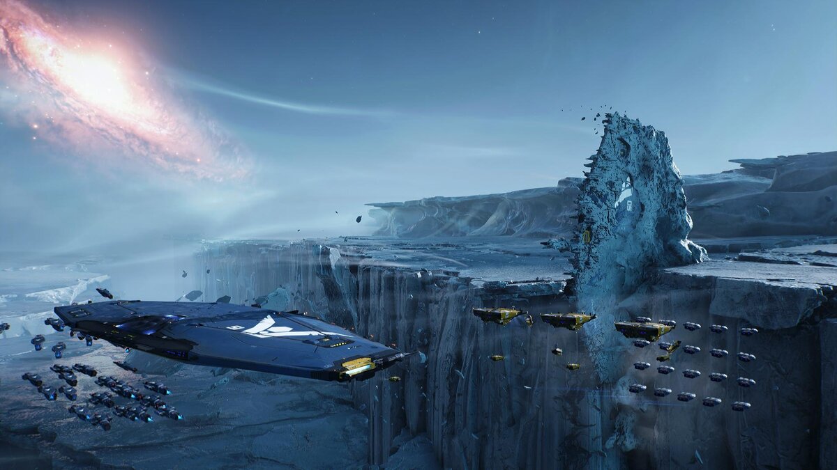 Homeworld 3 — наверно, самая кинематографичная стратегия. Разработкой руководил Роб Каннингем — арт-директор первых двух частей, и с визуальной точки зрения у новинки все в полном порядке. Детализированные и стильные корабли бороздят красивые космические просторы, маневрируют между исполинскими сооружениями близ звездных врат или плывут над огромным астероидом-ледником. Красиво.