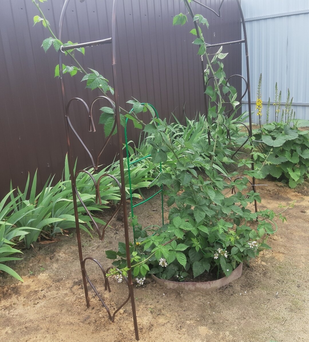 Вот решила в этом году замульчировать угол с голубикой, ежевикой, йоштой и кабачками.
