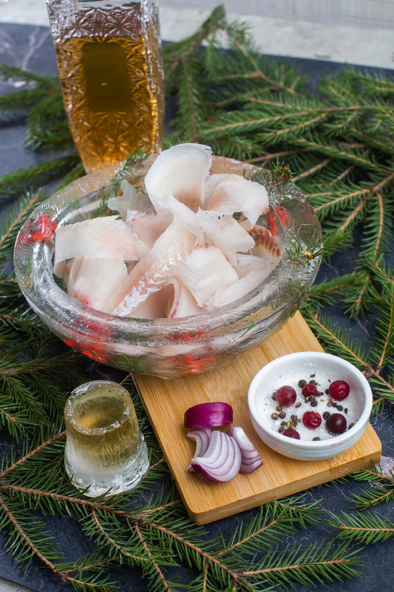 Блюда северных народов и любителей зимней рыбалки. Готовится, как правило из рыб сиговых (муксун, нельма, чир) и осетровых (стерлядь, осетр, белуга) пород. Замороженную рыбу очищают от кожи и нарезают или стругают тонкой стружкой (отсюда и название «Струганина»). Кусочки нарезанной рыбы макают в «Макало»- смесь соли и перца 1:1, и едят. Струганину подают небольшими порциями или на ледяном плато во избежание преждевременного размораживания.