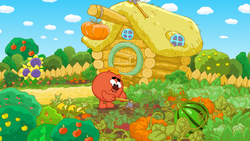 Всем привет как вам я пообещала и написала 1 серию шоу Нюшины песенки и так поехали Копатыч поливает свой огород насвистывая песню и закончил поливать он начал смотреть на свой огород потом приехала машина скорой помощи и разносил огород Копатыч сказал "да что за чертовщина тут творится " а из машины выпрыгнула Нюша с микрофоном она сказала " та-дам " в далеке услышен голос " вот она воровка" это были Карыч Совунья и Пин взрослые окружили Нюшу она сказала "Вот так гастроль получилась!" Потом на Смешариков падает дерево они успели увернуться от дерева и оно сломало машину взрослые поставили Нюшу в угол Карыч Совунья и Пин пошли натоскали сломанную машину в ангар Пина он починит машину а Копатыч дал Нюше наказание он сказал Нюше " ты будешь поливать огород"и он дал Нюше лейку она сказала "Поливать? Так ничего и не спев?!" Копатыч сказал " да ну чего стоишь за работу " и он вошёл в свой дом Нюша взяла лейку она начала поливать и поёт песню "Вот поливаю я грядки с капустой. Ах, как мне