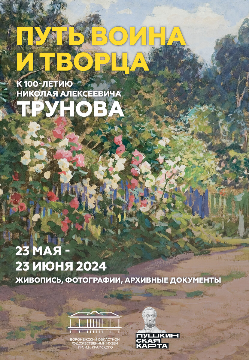 В ближайший четверг, 23 мая, в уютном выставочном пространстве Воронежского художественного музея имени И.Н. Крамского откроется уникальная экспозиция «Путь воина и творца». Вернисаж будет посвящен знаменательной дате - 100-летию с даты рождения Николая Алексеевича Трунова, участника ВОВ и талантливого живописца. Будущий художник Николай Трунов появился на свет в живописном воронежском селе Катино. С юных лет в его душе горел неугасимый огонь страсти к творчеству. В 1939 году Николай переехал в Воронеж, где получал уроки живописи у выдающегося педагога Александра Бучкури. В разгар войны, в 1943 году, Николая Трунова призвали в Красную армию. Он мужественно прошел долгий и тяжелый путь от родного Воронежа до столицы оккупированной Польши. За свои подвиги на фронте был награжден многочисленными медалями и Орденом Отечественной войны I степени. После войны Николай Трунов продолжил свой творческий путь. Он обучался изобразительному мастерству не только в Воронеже, но и Ельце и Харькове, за