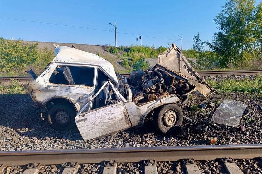Пока влюблённая парочка гуляла на природе, поезд раздавил их автомобиль