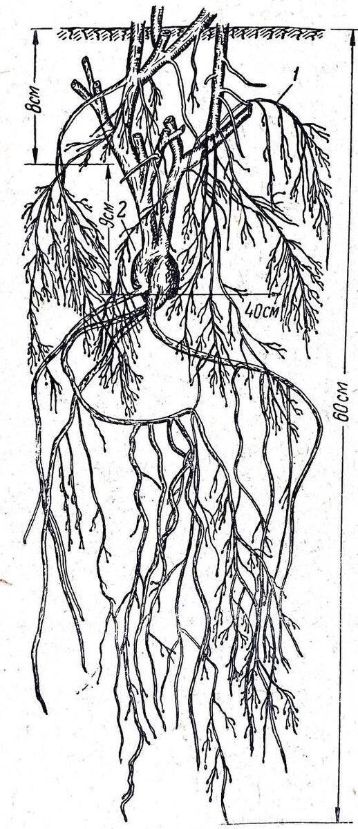 Корни розы корневая система у роз – стержневая и может вырастать до 1,5 метров. Особенно это касается привитых роз. Они имеют длинные, структурные корни, уходящие конусом на глубину 70-80 см и более, и небольшое количество мочек, состоящих из корешков высших порядков, расположенных на глубине 20-30 см. ↕️ Вот даже паропримеров из замечательной книги «Многолетники и розы» Николаенко Н.П., Вакуленко В.В., Алейникова Т.М., и Оборина Р.В. 📖