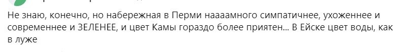 Как будто хотят подвести нас к мысли, что мы лохи сильно ошиблись, когда переехали из прекрасной Перми в захолустный Ейск.