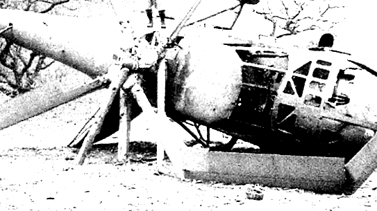 После этого произошло столкновение вертолета со склоном горы. Машина разрушилась и загорелась.