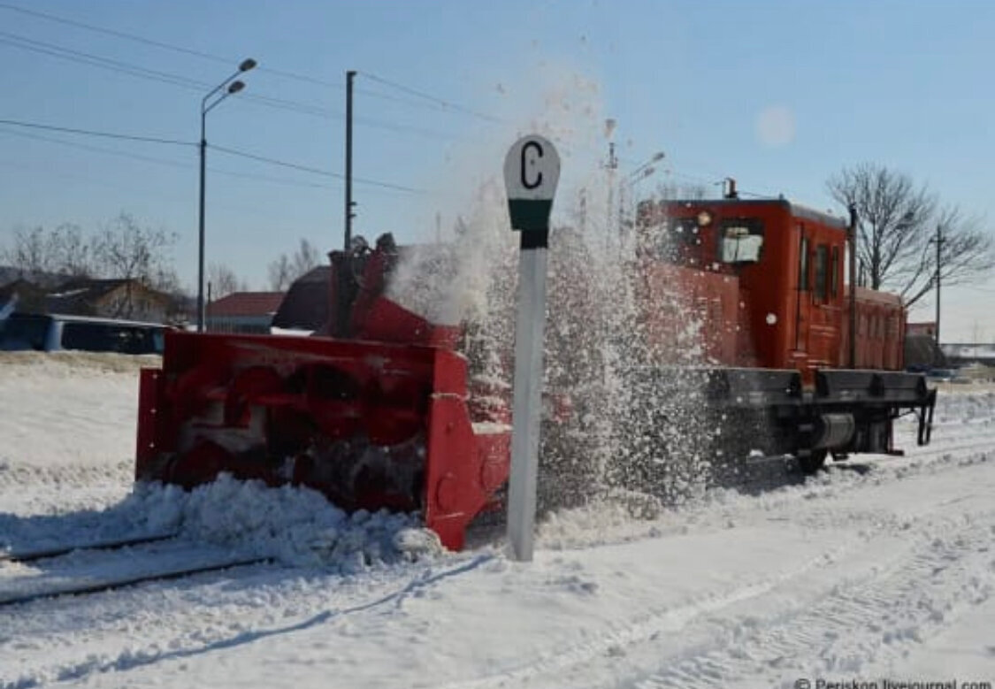Фрезерно-роторный ЖД снегоочиститель 448 л.с. на базе ЖД прицепа с автосцепкой на тепловоз
