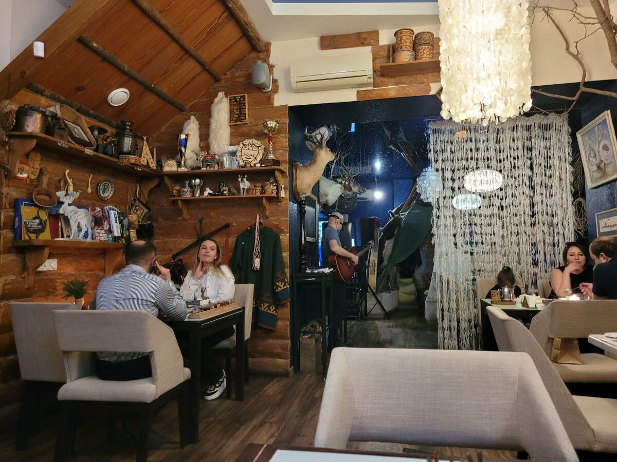 "Чум" позиционирует себя как ресторан-музей и, оказываясь здесь, понимаешь, что это вполне заслуженно. Интерьер действительно восхищает, чего только здесь не встретишь! От предметов обихода, которые столетия назад использовали народы Севера, до чучел животных, населяющих Сибирь.