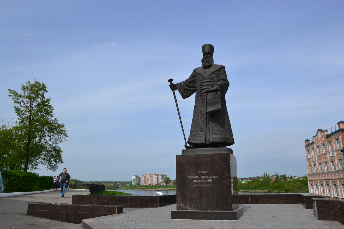 О нашем житье-бытье в поезде я рассказываю вот здесь , а о том, как было организовано само путешествие (экскурсии, переезды, еда), здесь . Сейчас же речь пойдет о первой остановке на нашем пути - городе Сызрань. Я уже писала, что наш визит в этот небольшой город, был очень кратким. Поэтому в своей статье расскажу не только о том, что нам показали, но и о том, что еще можно посмотреть и куда зайти, если вдруг решите погулять там сами. Сызранский кремль Сызрань была основана в 1683 году. По приказу царей Ивана Алексеевича и Петра Алексеевича воевода Григорий Козловский построил крепость Сызран на реках Сызранке и Крымзе. Воевать крепости особо не пришлось. Как боевую её использовали лишь раз, во время бунта Емельяна Пугачёва. Из пяти башен только одна - Спасская - была каменной. Она одна из всего кремля и дожила до наших дней. Рядом с башней несколько современных памятников, очень красивые цветники и потрясающие виды на речку Сызранку. Ныне на втором этаже башни расположена экспози