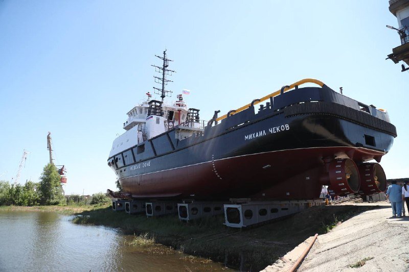 Спасательно-буксирное судно «Михаил Чеков» проекта 22870 для Минобороны РФ спустили на воду на верфи филиала «Астраханский судоремонтный завод» Центра судоремонта «Звёздочка», говорится в сообщении Объединенной судостроительной корпорации (ОСК). Проект был разработан нижегородским КБ «Вымпел», судно создано для оказания помощи аварийным кораблям и спасения личного состава, буксировки кораблей, тушения пожаров на судах и береговых сооружениях. «Михаил Чехов» может поддерживать на плаву аварийные суда, собирать разливы нефтепродуктов и проводить водолазные, поисковые и спасательные работы. Судно получило название в честь офицера Черноморского флота, который в годы ВОВ руководил аварийно-спасательными отрядами. Это уже седьмое судно этого проекта, головной буксир был сдан еще в 2014 году.