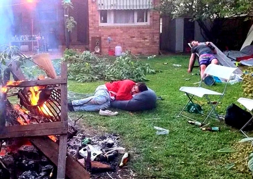 Возле самого домика картина была ещё хуже - пакеты с мусором, разбросанные пивные банки и упаковки от чипсов и сухариков, пустые пачки от сигарет заполонили всё пространство вокруг. На столе под яблоней стояла куча грязной посуды, валялись остатки засохшей еды, пустые бутылки.