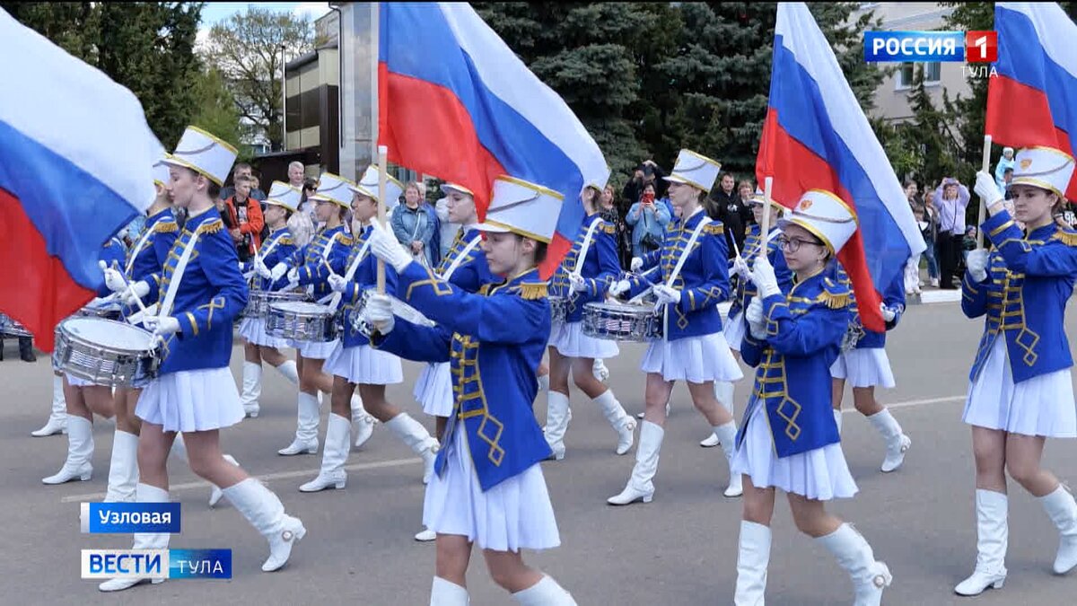 Белоснежные банты, улыбки и воротнички – уровень торжественности самый высокий. Пройти по центральным улицам Узловой при параде и с песней собралась, буквально, вся активная молодёжь района. Была гордость, патриотизм, радость.Наша малая Родина, все друг за друга держатся. Мы все – крепкая семья. Парад – это не просто праздничное шествие, но и некое подведение итогов учебного года, который юные участники мероприятия провели с огромной пользой. Причем, не только для себя! Вера Фролова, заместитель директора по воспитанию ЦО «Фёдоровский»: Ребята становятся дружнее, сплочённее. У них есть перспектива какая-то в жизни. Они видят, что они могут реально какие-то дела совершать по своим возможностям и жить интересно. Уже порядка 6-ти десятков лет в Узловой бережно хранится традиция парада юнармейцев. Обычно он проводится в День Победы, но в этом году, по понятным причинам, массовое собрание людей пришлось отменить, вернее, перенести. Так, новая дата совпала с праздником, который отсылает к сч