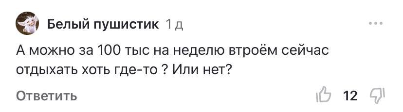 Меня спрашивают: "А можно за 100 тыс. на неделю втроём сейчас улететь или нет?" Отвечаю: сейчас можно