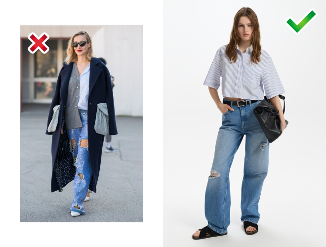 Поиск идеальных джинсов, которые будут актуальны несколько сезонов подряд — тот еще квест. Магазины и маркетплейсы в первую очередь предлагают самые горячие тренды, которые сменяются быстрее ветра. Как выбрать вещь, о покупке которой не придется жалеть уже завтра? Сегодня расскажу, на какие джинсы не стоит даже смотреть в 2024 году и чем их заменить. Слишком рваные Излишне «потрепанные», с разрезами по бокам, дырявые чуть ли не по всей длине джинсы выглядят максимально устаревшими. Такие модели были мимолетным микротрендом, рассчитанным на пару-тройку выходов. Чем заменить: в 2024 году возвращаемся к минимализму. Если хочется придать образу гранжевости, выбирайте модели с лаконичными, едва заметными разрезами на коленях или в районе талии. Сделали подборку самых актуальных джинсов в 2024 году. Где купить: Love Republic, 4 999 руб. Расклешенные, в облипку Фасон bootcut вновь вернулся к нам из нулевых. Следовало ожидать, что тренд задержится надолго, а модель трансформируется во что-то