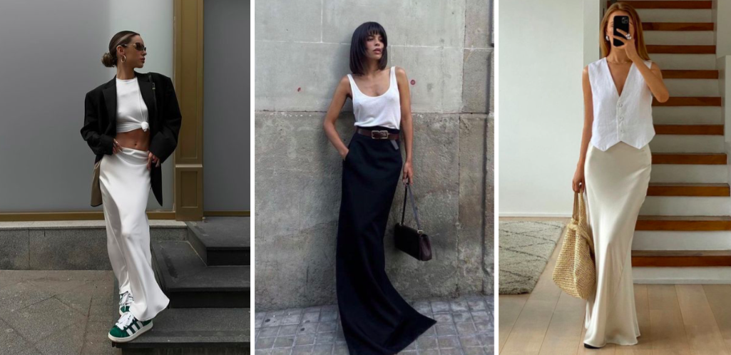 Юбка в пол — это один из тех игроков гардероба, которые по щелчку пальцев создают вид благоразумности. Но многие обходят её стороной, боясь придать себе излишне скромный вид. Мышление менять мы здесь не будем, а лишь посмотрим, как можно носить длинную юбку современно и стильно! Итак, ловите несколько способов остаться в выигрыше, надевая юбку макси. №1 Открытые руки / декольте/ живот (нужное подчеркнуть) Низ полностью закрыт, значит можем элегантно открыть верх. Для тех, кто хочет оставаться в пределах элегантности, не скатываясь в пошлость, можно выбрать, что именно показать миру — живот, руки, декольте. №2 Прозрачность + удлиненный верх Вписываем тренд в образ. Это довольно смелое сочетание. Отлично подойдет не только для повседневных выходов с подружкой по городу, но и на вечернее мероприятие. Достаточно сменить плоский ход на каблук, а свитер на овер пиджак. №3 Детали «с характером» Для тех, кому юбка макси кажется слишком женственно мягкой, предлагаю добавить немного грубых или э