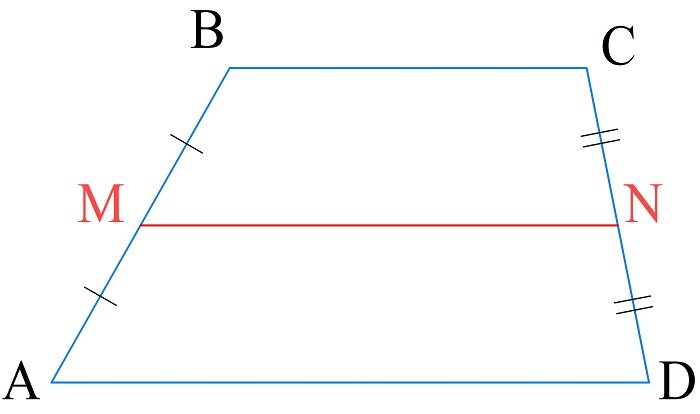 Определение Средней линией трапеции называется отрезок, соединяющий середины боковых сторон трапеции. Это важное понятие в геометрии, так как средняя линия обладает уникальными свойствами, которые делают ее изучение особенно полезным при решении задач. В частности, средняя линия помогает упростить вычисления и дает нам дополнительные инструменты для анализа геометрических фигур. Пример: Рассмотрим трапецию ABCD, где BC и AD – основания, а AB и CD – боковые стороны. Пусть M и N – середины боковых сторон AB и CD соответственно. Тогда отрезок MN называется средней линией трапеции. Теорема о средней линии трапеции Теорема о средней линии трапеции утверждает, что если прямая, пересекающая середину одной боковой стороны, параллельна основаниям трапеции, то она делит пополам вторую боковую сторону трапеции. В математическом выражении это выглядит следующим образом: если M и N – середины боковых сторон AB и CD трапеции ABCD, и MN параллельно основаниям BC и AD, то отрезок MN делит пополам боко
