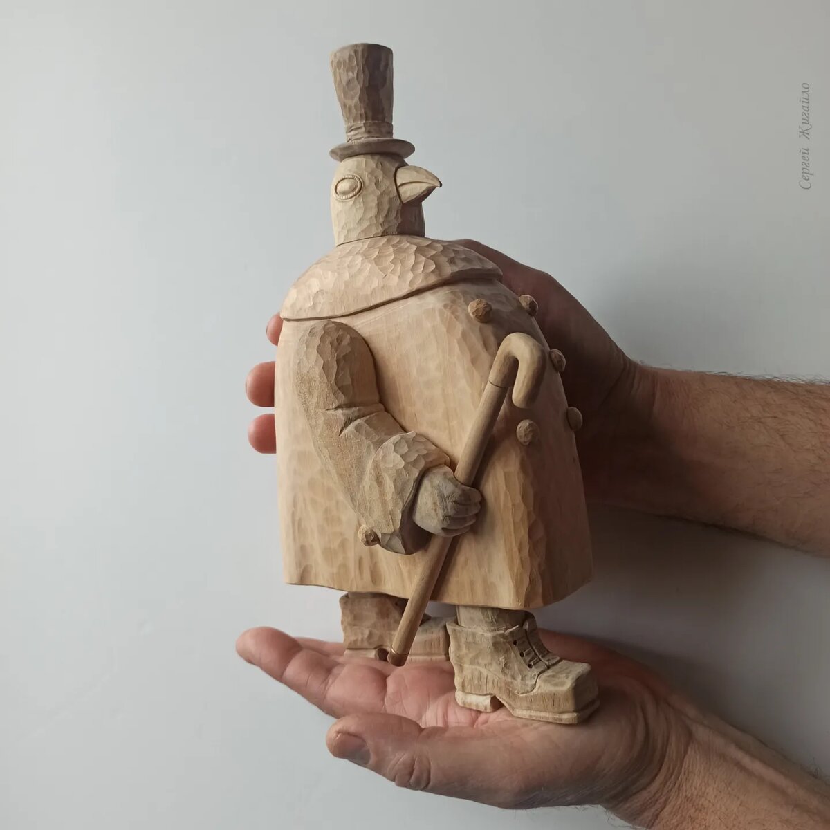 Большинство созданных мной деревянных персонажей - животные или птицы. Но это, конечно, не обычные представители учебника зоологии. Мои герои носят одежду, курят трубки, укрываются от дождя зонтами и делают много всякой всячины, присущей только людям. Создание подобных персонажей дело увлекательное, в процессе резьбы они обрастают собственным характером, историей, становятся личностями. Сегодня я покажу двух интересных птиц. Их именами и историями я поделюсь с вами в следующий раз. Должен сказать, что они кардинально отличаются от предложенных ниже шутливых псевдонимов, которые пришли мне в голову в процессе работы. Но почему бы и не поюморить, нам можно) Мистер Трамп, как вам такое имя? Меня оно позабавило, ведь что-то трамповское в облике этой важной птицы, несомненно, проглядывает. Посмотрите, какая дама! Сама королева Елизавета, не иначе) Я действительно видел когда-то похожее фото бывшей владелицы английского трона. Работа над персонажами ещё не завершена. Фигуры будут покраше