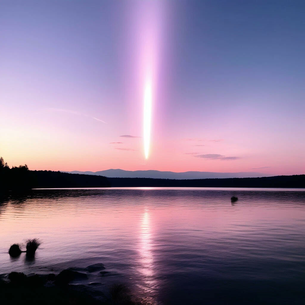 Девушки дошли до одного из ближайших озёр и замерли, увидев фиолетовый столб из света, спускающийся с неба прямо в озеро.