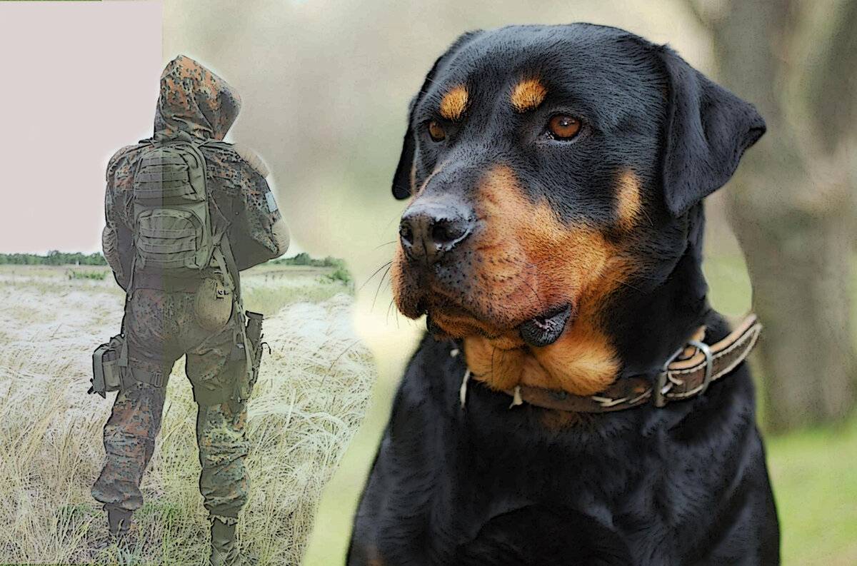 Обладателем его оказался человек в камуфляжной форме и высоких армейских берцах. Рядом с ним сидел пёс, напоминающий с виду то ли перекормленного добермана, то ли, наоборот, слишком поджарого ротвейлера.