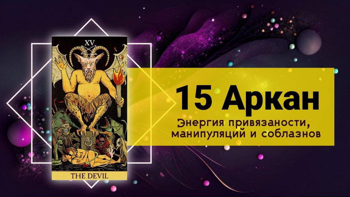 Ключевые слова по 15 аркану: Зависимости, привязанности, соблазны, материальные желания, манипуляции, контроль, страхи, негативные влияния, подавленные желания, осознанность.