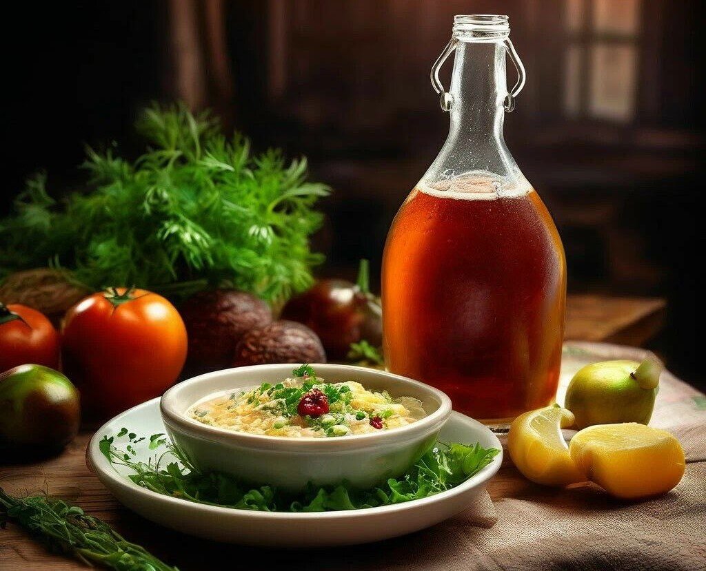 Домашний квас — это традиционный русский напиток, который идеально подходит для приготовления окрошки. Он освежает, обладает приятным кисловатым вкусом и натуральными пробиотиками, полезными для пищеварения. Этот рецепт кваса для окрошки не требует сложных ингредиентов и легко готовится в домашних условиях. Приготовление кваса в домашних условиях пошагово Ингредиенты (на 4 порции) Чёрный хлеб (лучше ржаной) — 300 г Вода (фильтрованная, можно бутилированную) — 2 литра Сахар — 100 г Дрожжи (сухие) — 1 чайная ложка Мята (свежая или сушёная) — 1 веточка (по желанию) Подготовка ингредиентов Инструкции по приготовлению Время приготовления Общее время приготовления составляет около 48 часов: Пищевая ценность (на 100 грамм) Домашний квас для окрошки обладает ярким вкусом и прекрасно подходит для летних холодных супов. Его натуральная кислинка и аромат придают блюду уникальный характер, который невозможно получить с магазинным квасом. Квас готов. Приятного аппетита!