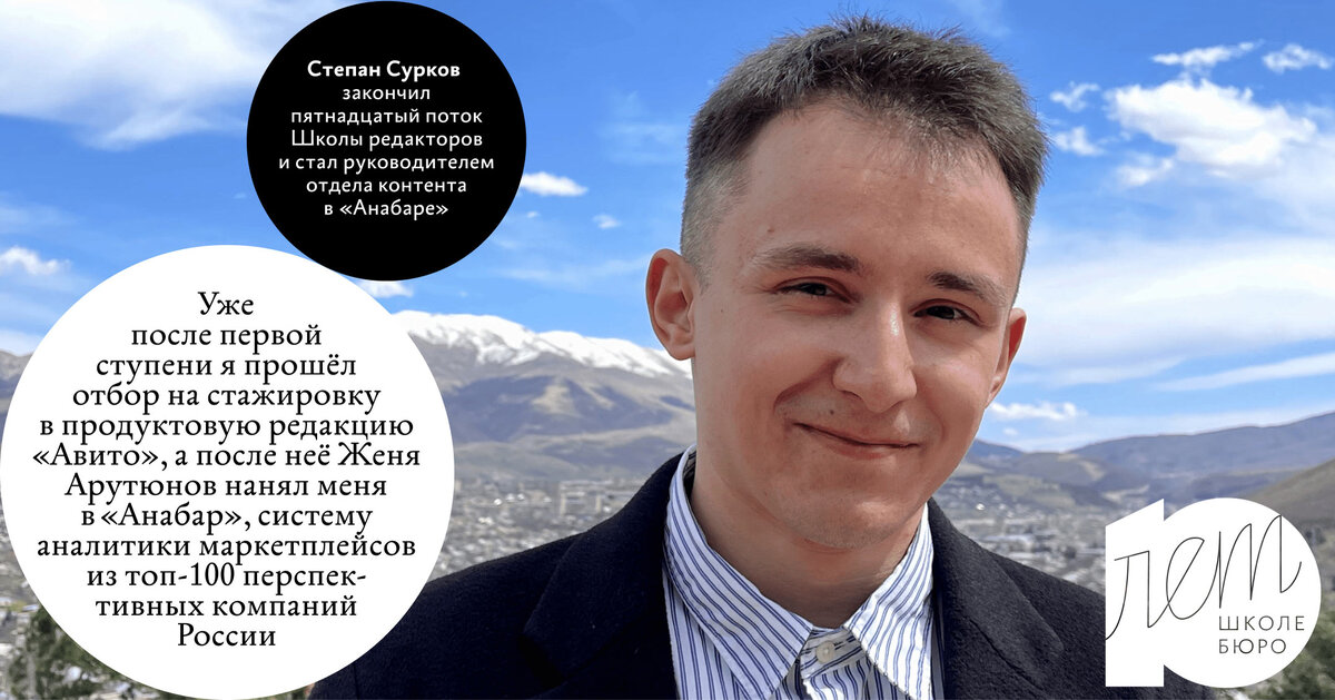 Степан Сурков закончил Школу редакторов и стал руководителем отдела контента в «Анабаре» — история студента к 10‑летию Школы бюро