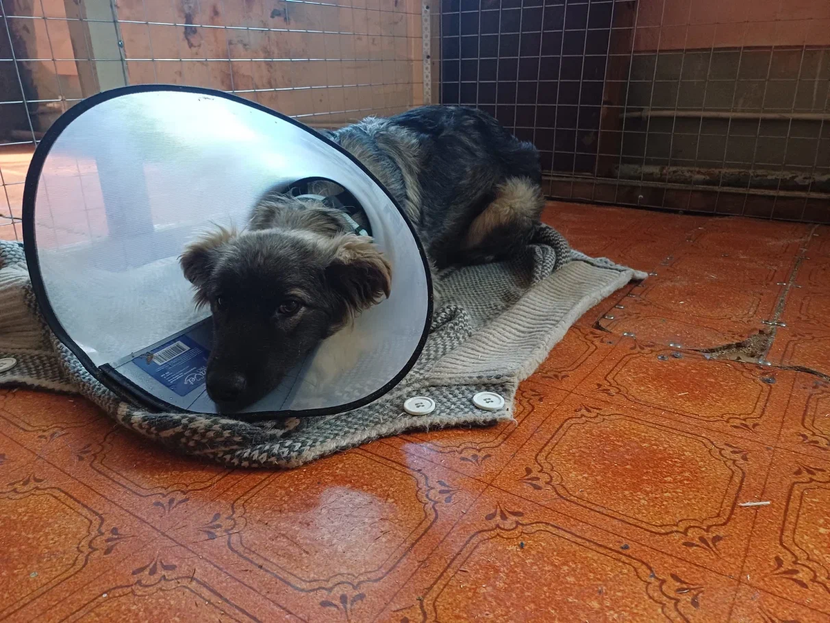 Здравствуйте, добрые люди! Собачка Юна жила около магазина автозапчастей, где её приняли и приютили работники этого магазина. Они с самого её рождения заботились о ней, подкармливали и даже собирались построить для неё будку...но собачка попала под машину и после этого стала сильно хромать на одну лапку, было очевидно, что у неё перелом. У этих людей очень маленькие зарплаты, а сделать рентген лапки и дальнейшую операцию можно было только в другом городе и поэтому они попросили помощи у меня и я просто не смогла им отказать. Когда мы сделали рентген, то на нём невооруженным глазом было видно перелом со смещением и стало понятно, что ей срочно нужна операция, ведь чем дальше мы будем её оттягивать, тем хуже будет собачке...Однако операция эта стоила 15 000 рублей и пришлось нам делать её в долг. Юне поставили спицы и пока что она находится в приюте, где мы каждый день обрабатываем её рану. Юна оказалась очень спокойной и доброй девочкой, вот только пока что сильно всего бои