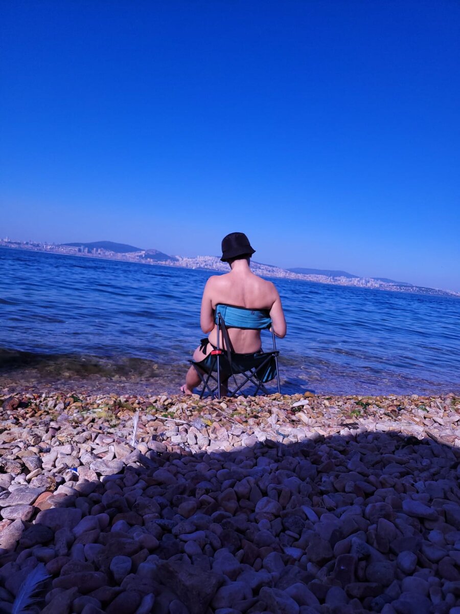 Есть несколько вещей, мест и занятий которые делают меня счастливой. Дают мне энергию и силы. Одно из них это морской берег. У меня были сложные отношения с собой долгие годы жизни здесь, неумение жить для себя, неспособность насладиться возможностями места где я живу - на местный пляж в Стамбуле я попала первый раз года четыре назад, села на шезлонг и прослезилась от осознания "а что так можно было?" Долгие годы терапии и конец периода выживания наконец то вернули мне меня и мою собственную жизнь. Не то что бы я совсем не попадала на моря, было Средиземное и Эгейское моря, я ездила в отпуск, но это было так не долго, а тут все выходные и весь отпуск с конца мая до конца сентября мы вместе. Мраморное, Черное, Эгейское .. Это огромная разница. Теперь каждое лето при малейшей возможности я на побережье, у меня есть велосипед, маски ласты трубки, все необходимое для такой жизни включая небольшой складной стульчик отлично помещающийся в тоненькую сумку. Это моя одержимость, моя страст