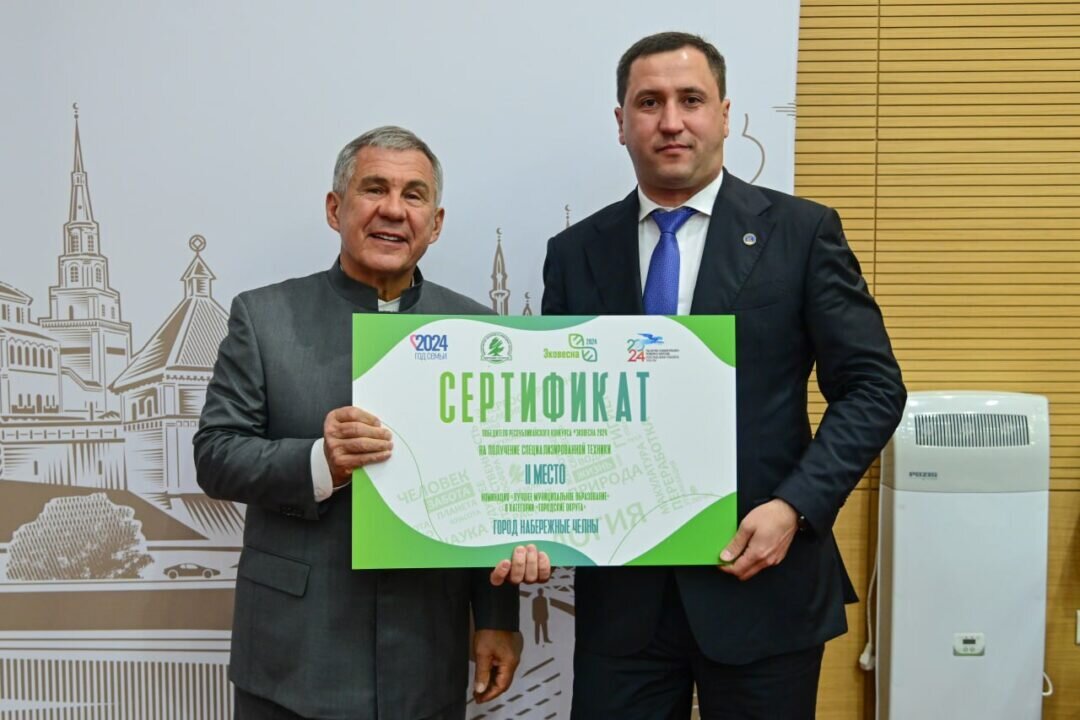 Победителей конкурса лично поздравил Рустам Минниханов. Набережные Челны получили сертификат на покупку специализированной техники от Татарстана. Команда заняла второе место в категории «Городские округа» конкурса «Эковесна». Его проводили в рамках санитарно-экологического двухмесячника.