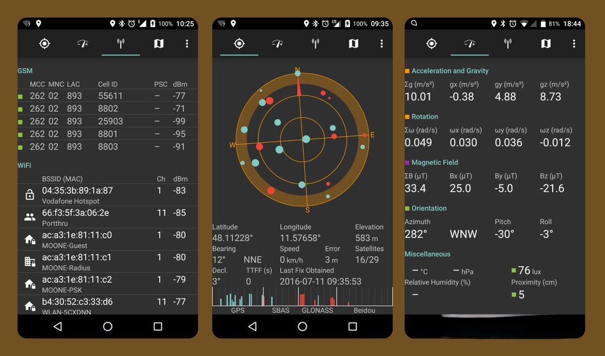 SatStat удобный инструмент для оценки возможностей вашего устройства. Если ваш смартфон не обладает определенными датчиками, SatStat просто не будет отображать соответствующую информацию. Исходный код доступен на GitLab.