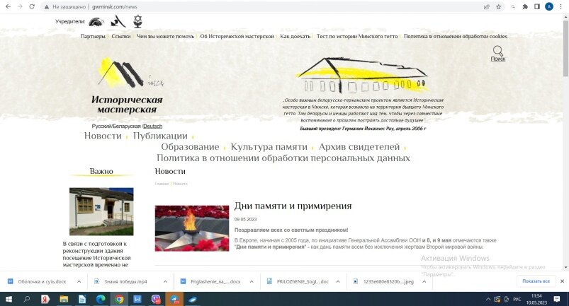 Однако руководство Исторической мастерской пренебрегло нашей Конституцией, культурными и духовными традициями, а также словами Президента, сказанными 9 мая 2022 года на площади Победы. В очередном поздравлении от 8 мая 2022 года читаем: