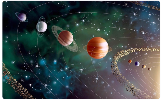 Планеты нашей солнечной системы выстраиваются в ряд.