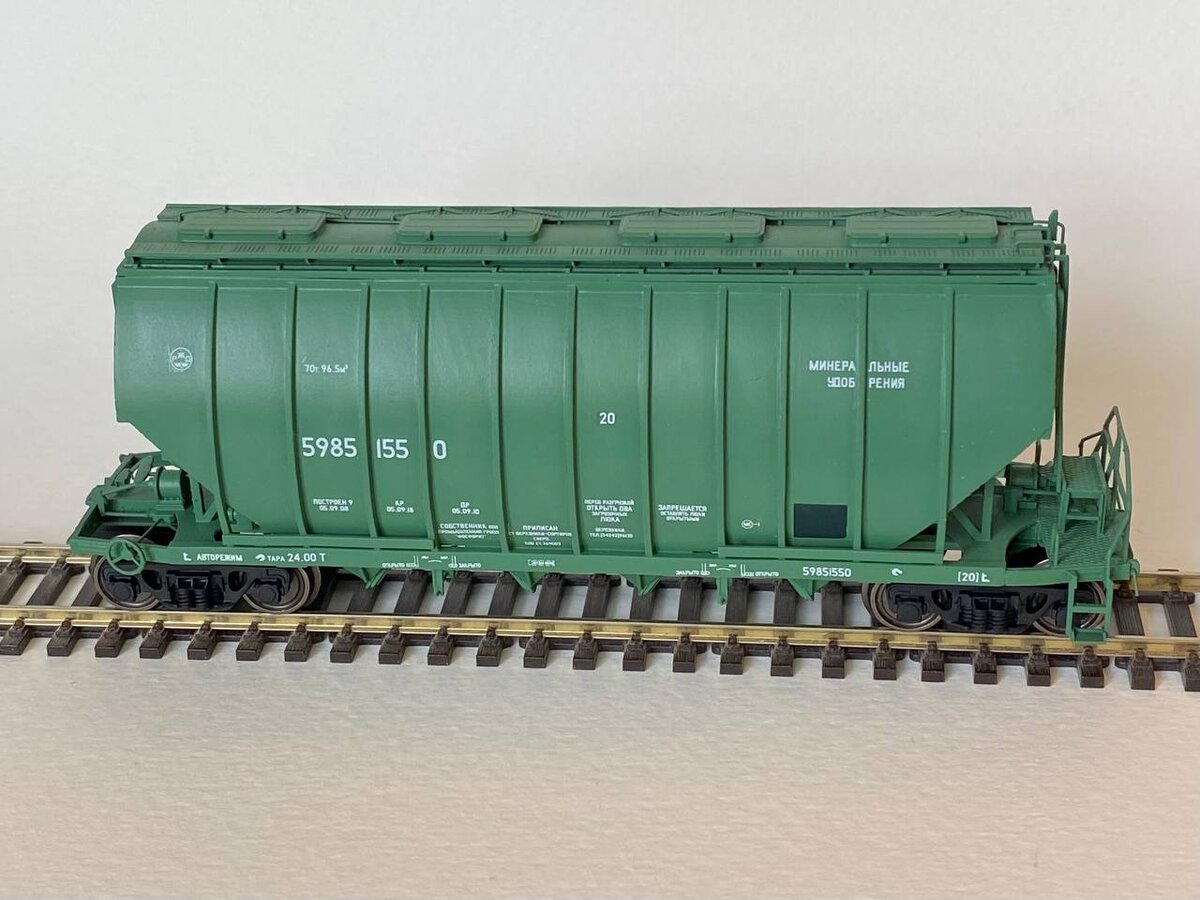 Модель вагона для перевозки минеральных удобрений 19-13116, изготовленная из набора для самостоятельной сборки производства Дмитрия Агапкина в масштабе 1:87. Модель строилась по мотивам реального прототипа - вагона, принадлежащего компании «Уралкалий». Набор изготовлен из фотополимерной смолы, включает в себя кузов, крышу, переходную площадку, тележки. Тормозное оборудование выполнено частично отдельно, частично заодно с кузовом вагона. Процесс сборки несложен, благо есть подробная инструкция, в которой детально шаг за шагом показан весь алгоритм сборки модели. Для сборки потребовалось добавить несколько кусочков латунной проволоки для обозначения различные рычагов, поручней и т.д. Модель была окрашена грунтами, акрилами и лаками Мистер Хобби. Декали родные, из набора Дмитрия Агапкина. Это уже не первый использованный в работе набор от данного производителя, и при определенной сноровке собирать такие вагоны не составляет сложности. Делали такие модели? Напишите в комментариях про с