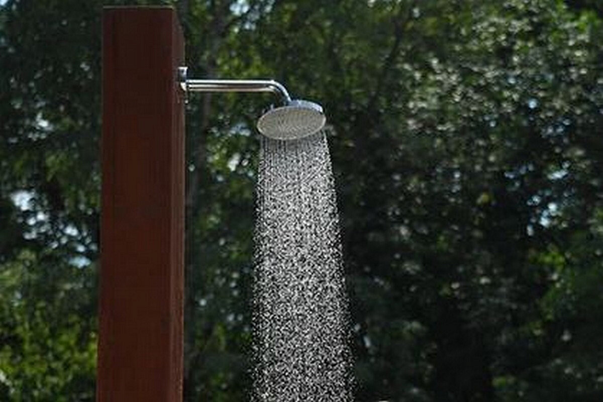 Школьницы целый день гуляли на улице. Из-за жары девочка решила освежиться и пошла в летний душ, установленный на участке у подруги. Зайдя в кабинку она включила водонагреватель.
