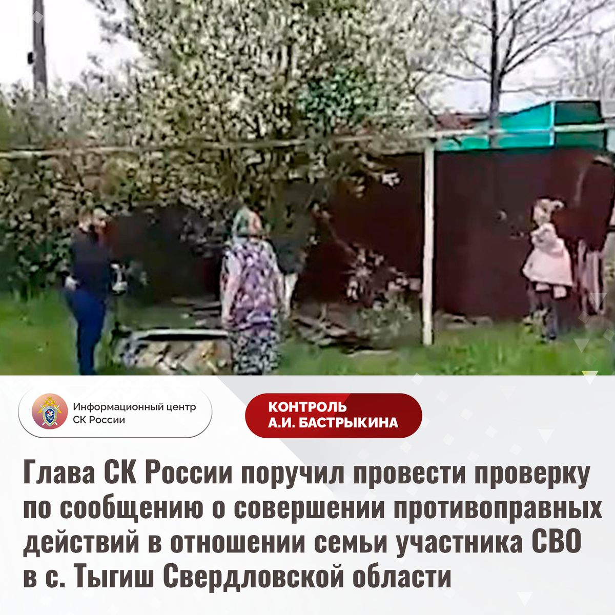Глава СК России поручил провести проверку по сообщению о совершении противоправных действий в отношении семьи участника СВО в с. Тыгиш Свердловской области