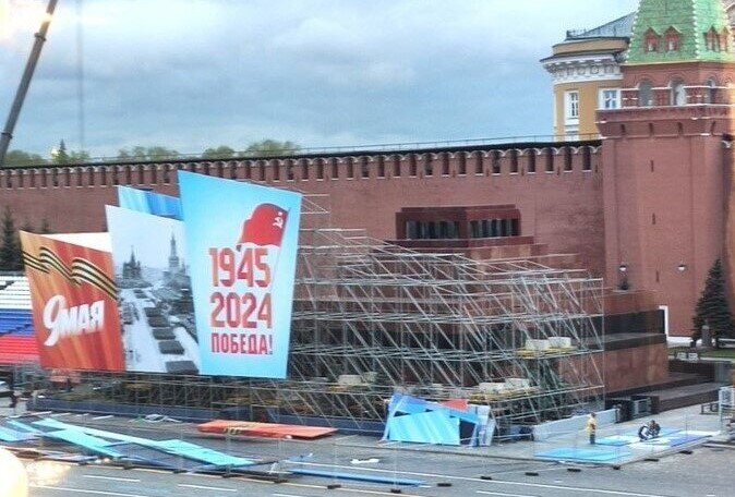 "В связи с тем, что надпись «Ленин» на фасаде Мавзолея была практически над головами присутствующих гостей, начиная с 2004 г. принято решение сначала о частичной, а потом целиковой драпировки Мавзолея в период проведения Парада Победы, при этом стилистика оформления ежегодно различается."